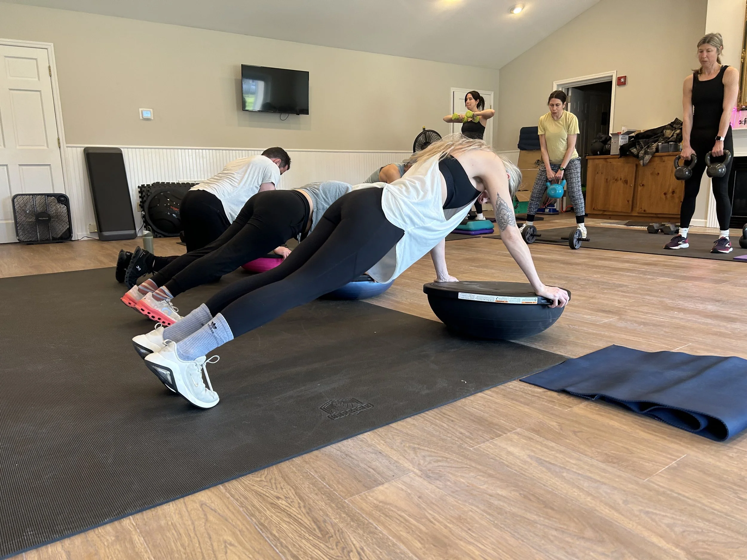 This format blends moderate weights and bands with longer intervals, pulses, holds, and tempo work to build strength and stability. You’ll see it featured within our “Build + Burn” classes.